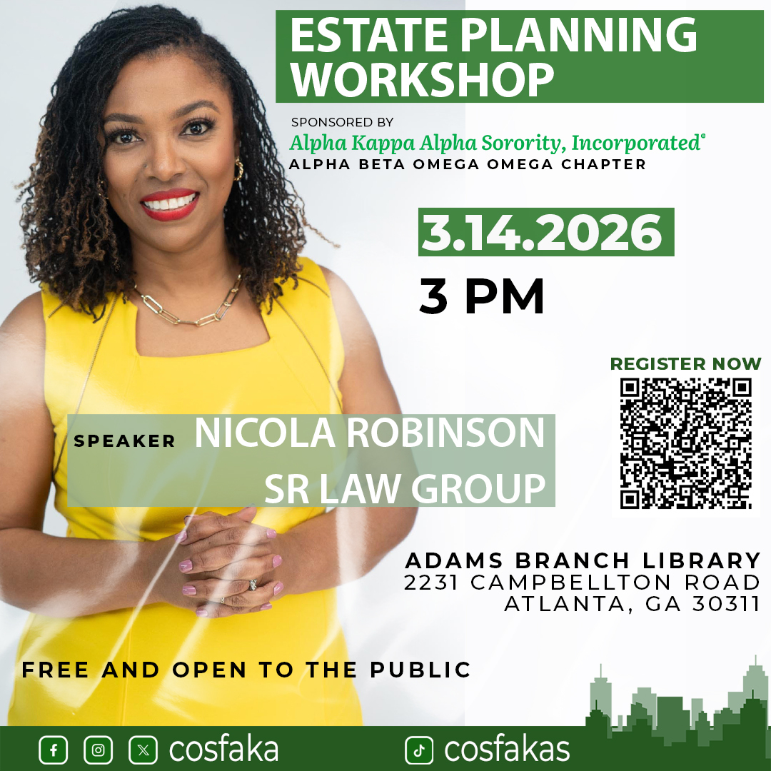 Open to the public! Build Our Economic Wealth Committee presents Estate Planning 101 where we will discuss various topics on proper estate planning. Join us and learn more regarding estate planning for our future and our families.